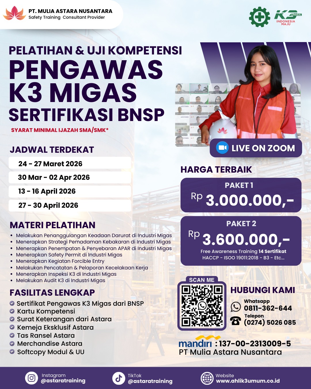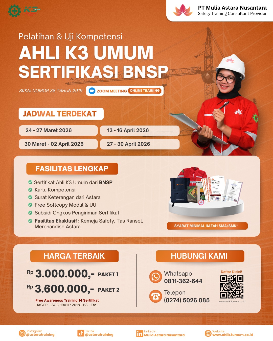 · Harga: Mulai Rp 3.000.000,- (Paket 2 cuma nambah dikit, dapet 14 Sertifikat Awareness tambahan!).